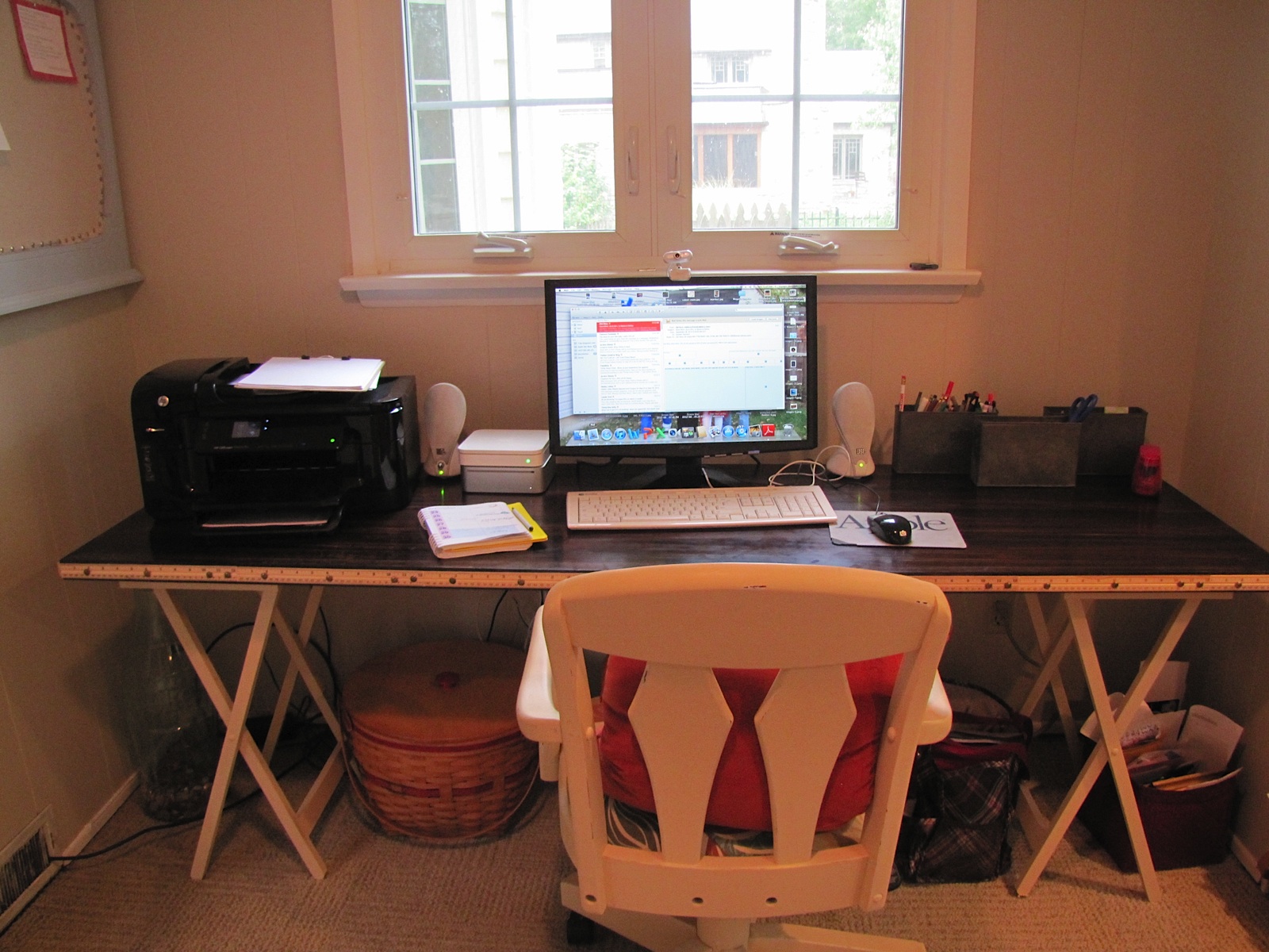 With the help of Pinterest, I found that wooden sawhorses would make great legs.
